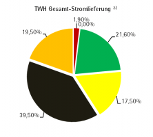 1) Der Strommix für die Produkte TWH strom regio, TWH strom natur und TWH strom natur gewerbe sind Bestandteile des oben aufgeführten Energieträgermixes der TWH.
