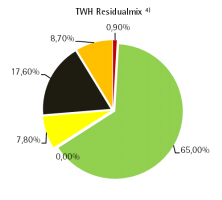 2) Gesamtstromliefermix der TWH abzüglich Stromliefermix TWH strom regio, TWH strom natur und TWH strom natur gewerbe